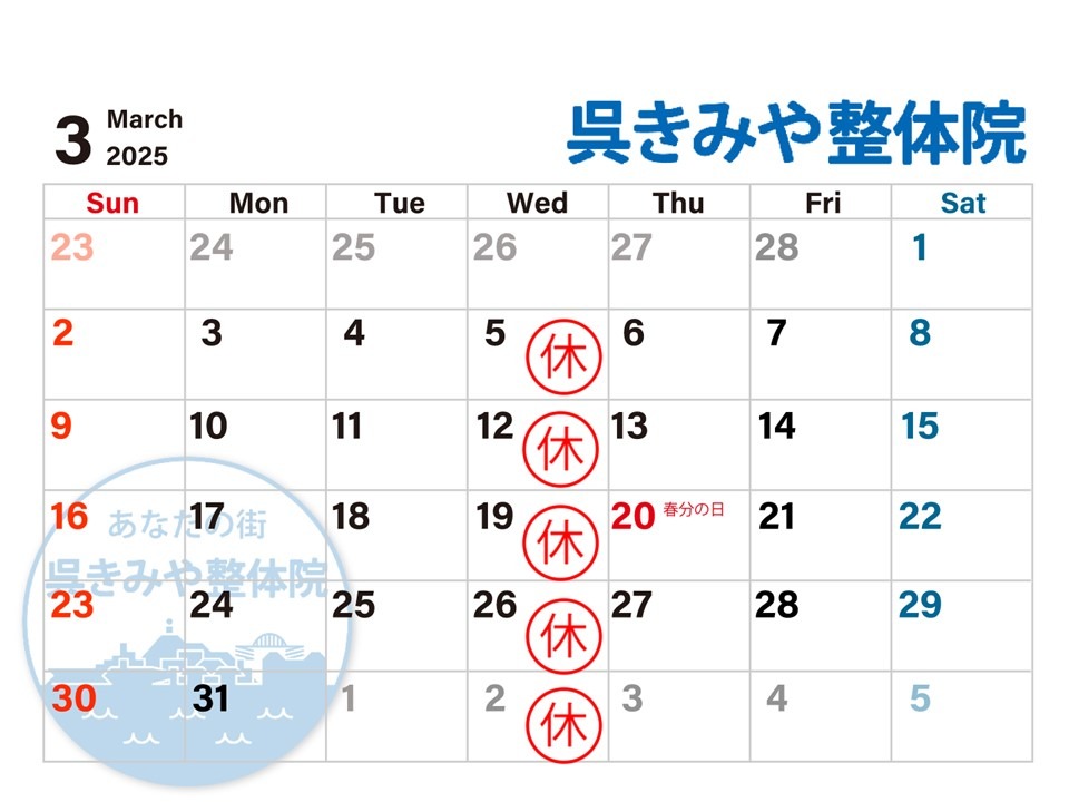 腰痛改善・産後ケアで人気の呉市の整体院「呉きみや整体院」です。