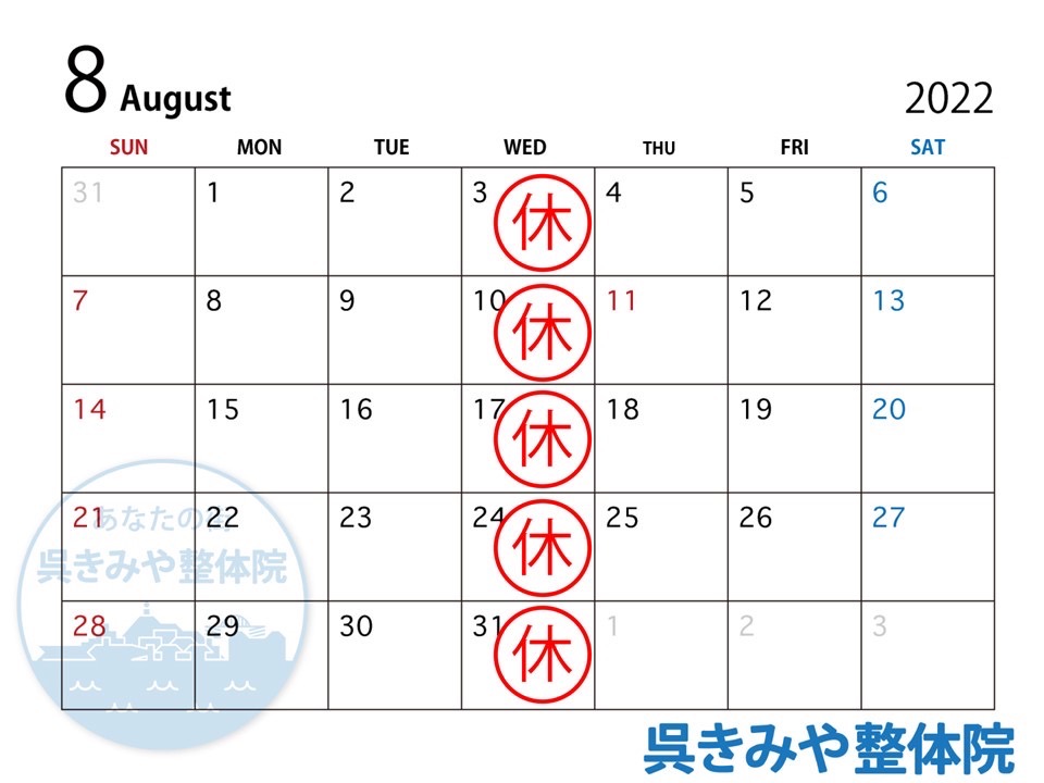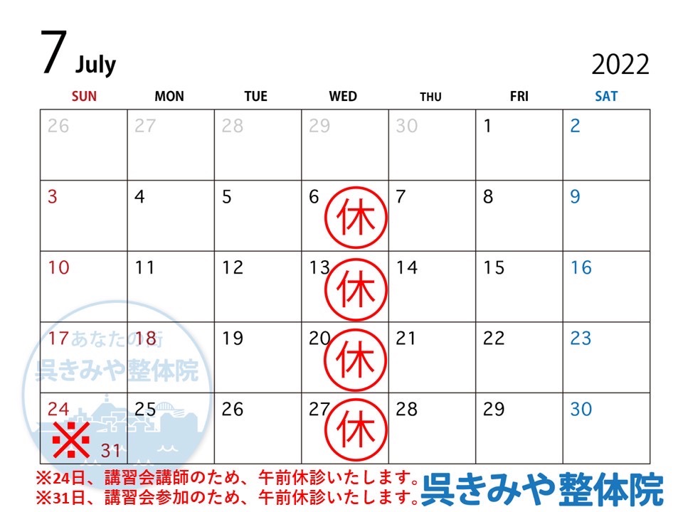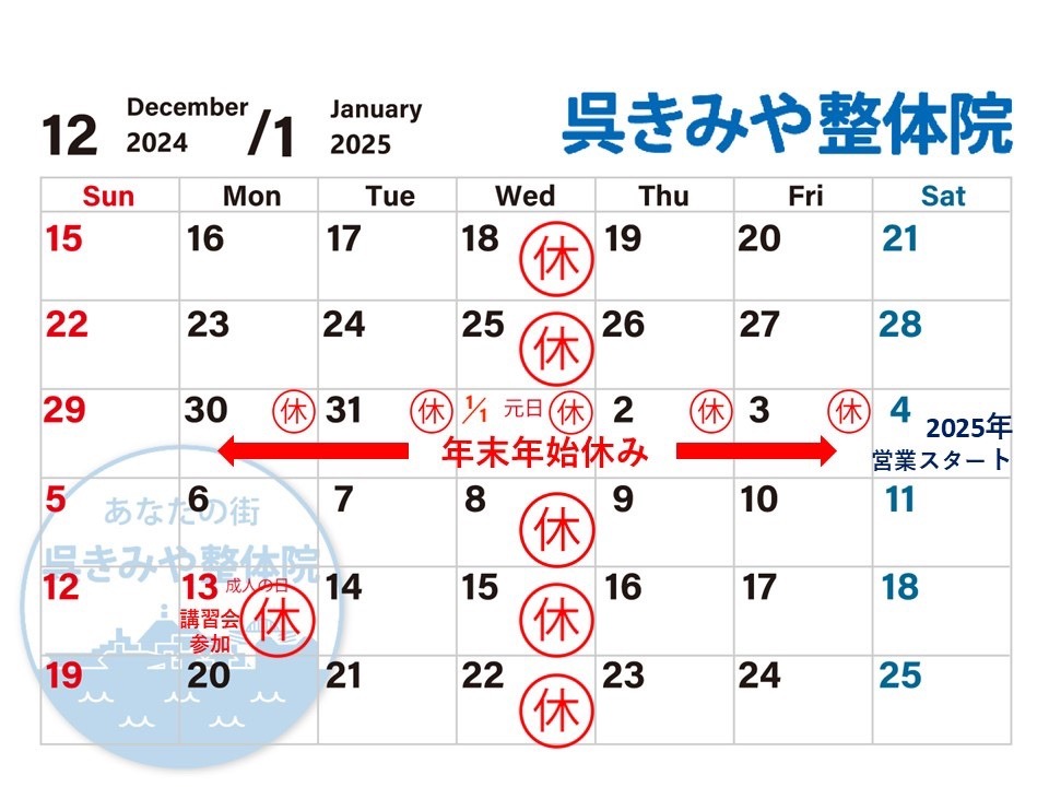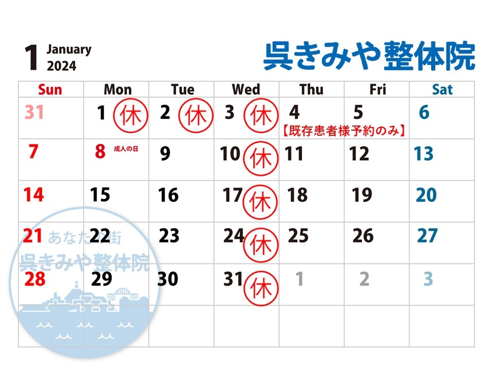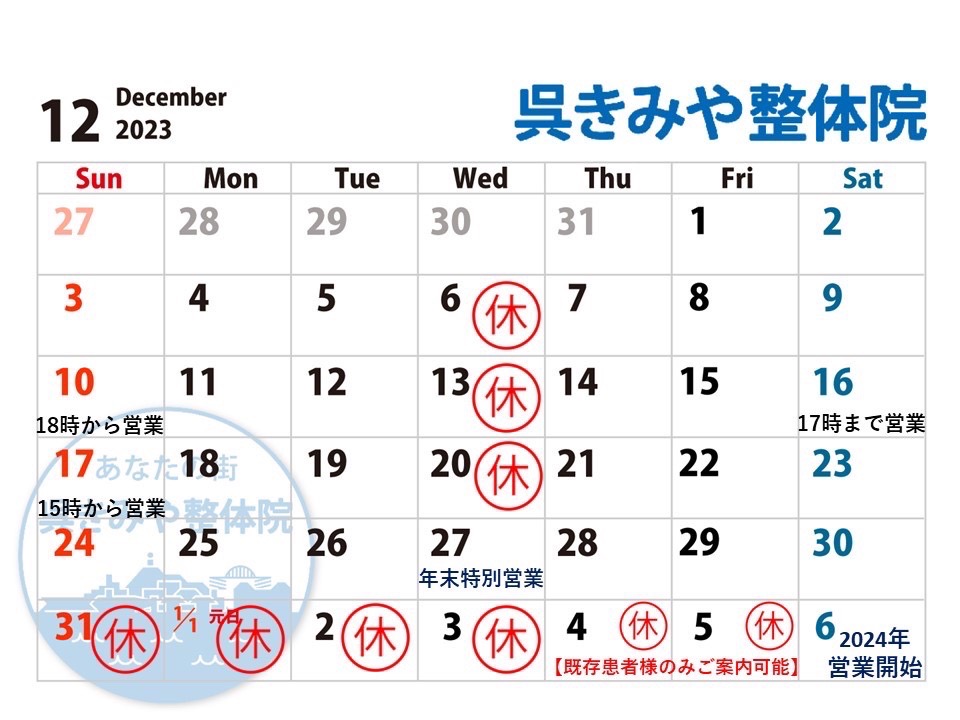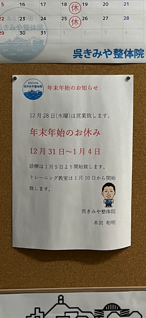 特に特別な休院日はないため、通常通り水曜日の休みだけになるので、土日や祝日でもお気軽にお越しくださいね。