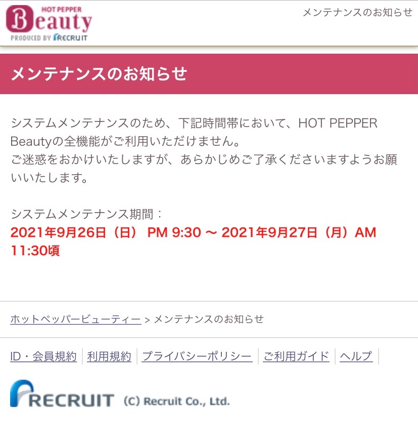 本日午前中ホットペッパービューティーがメンテナンス中になっています。
