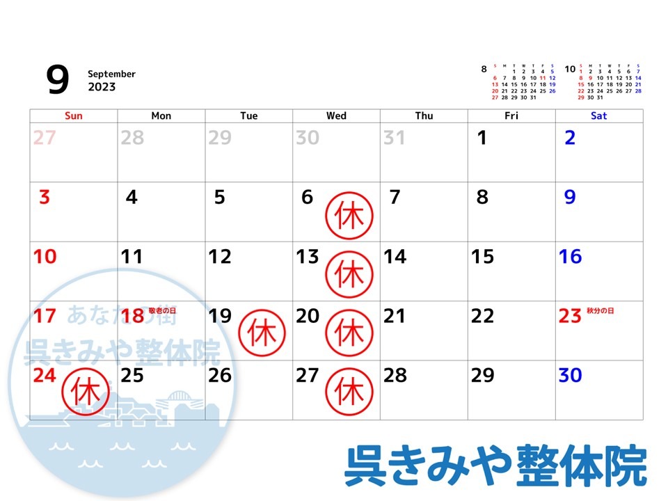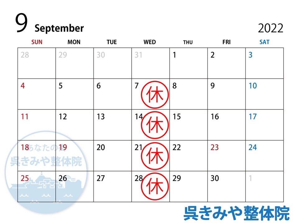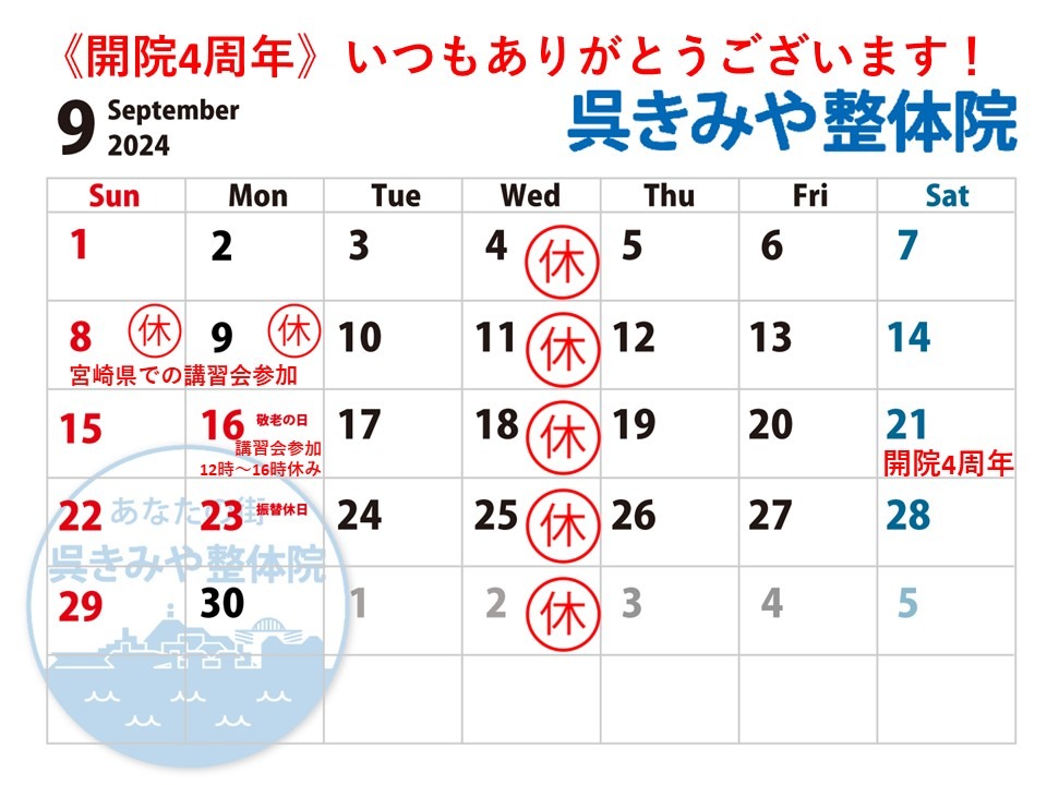 9月の営業スケジュールを掲示していますのでご確認ください。