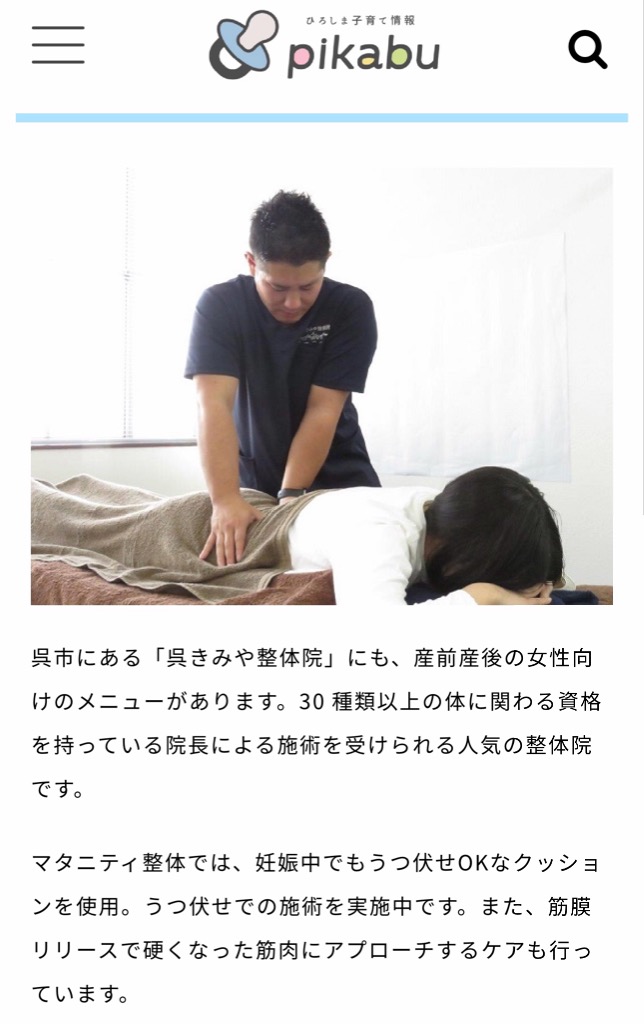 ひろしま子育て情報サイトのピカブさんの特集で人気整体院12選に選ばれました。