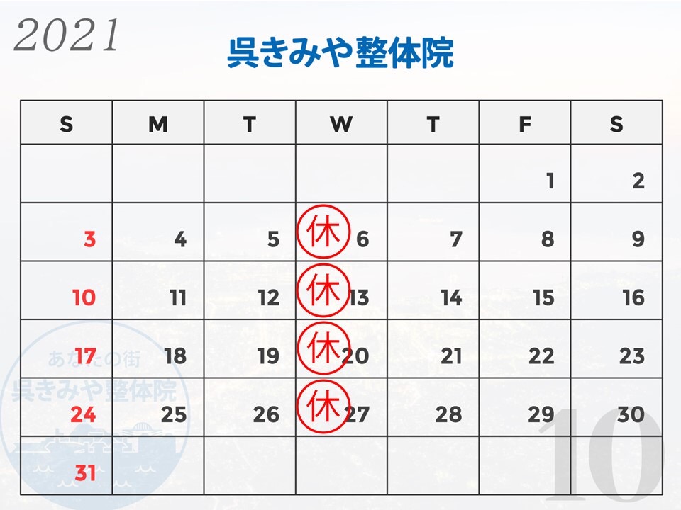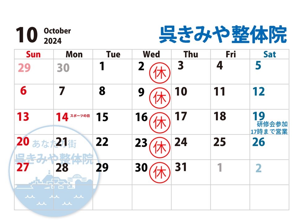 10月になりましたので、営業スケジュールをお知らせ致します。