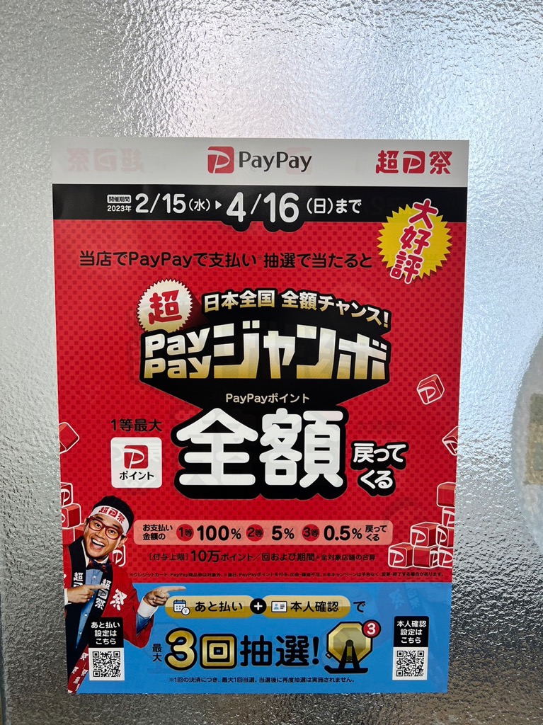 PayPayご利用の方はお会計時に『PayPayで』とお伝えください。