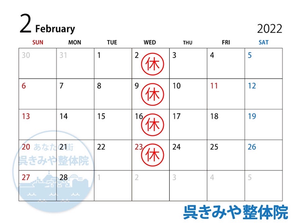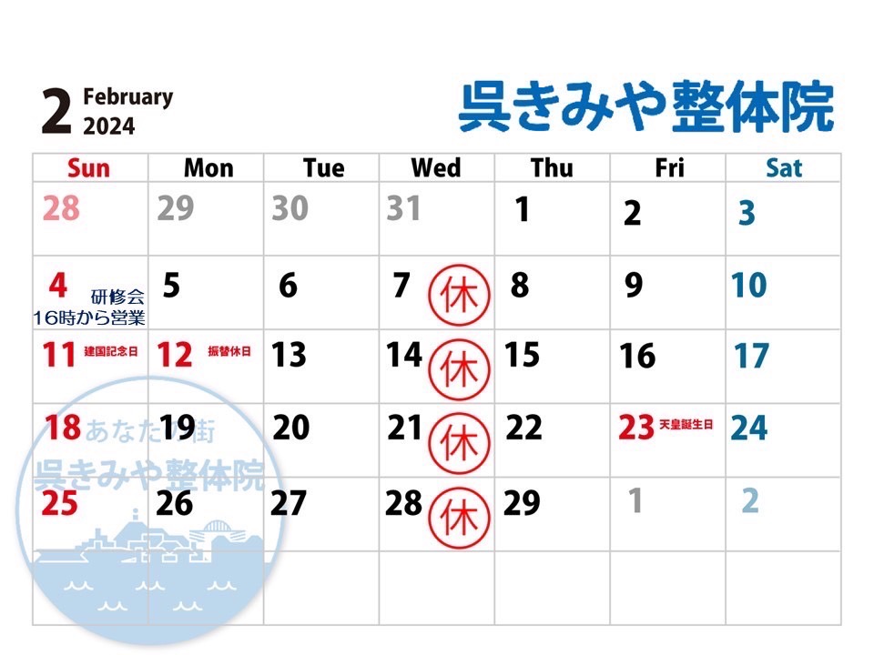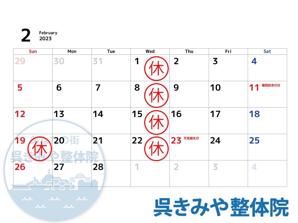 2月になりましたので今月の営業スケジュールをお知らせ致します。