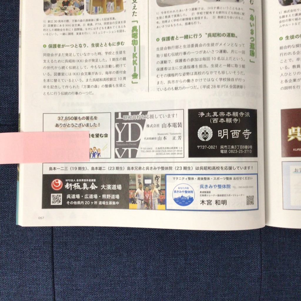 今発売させているくれえばんの呉昭和高校特集のページにOBとして広告を出しました。