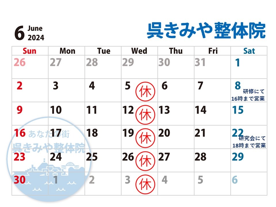 6月の営業スケジュールをお知らせいたします。カレンダーをご確認ください。
