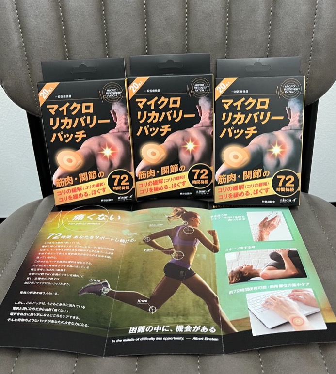 鎮痛と組織修復、疲労回復が期待される微弱電流が発生するパッチです。