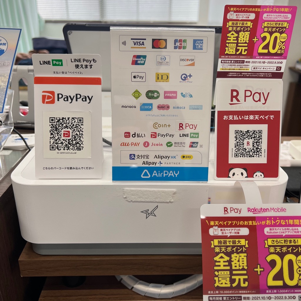 現金だけでなく、クレジットカードもご利用できます。(VISA/MasterCard/JCB/American Express/Diners/Discover)また、以下の写真の電子マネー・バーコード決済のご利用も可能です。